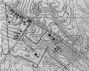 Aquilla Scott, as Rev. James Aquilla became known, was quite prosperous. He and his wife had 12 children. In 1833 he bought acreage in Bare Hills to build the log chapel and adjacent parsonage just upland of the Northern Central Railway right-of-way. Later he bought a larger tract of land on the other side of Falls Road so he could build several homes for his extended family before dying in 1858. The map represents what’s called the Scott Settlement Historic District, one of Baltimore County’s oldest African-American enclaves. 18 dots on the map represent the homes of his numerous generations of descendants, including several pictured here (in altered states from the original buildings).