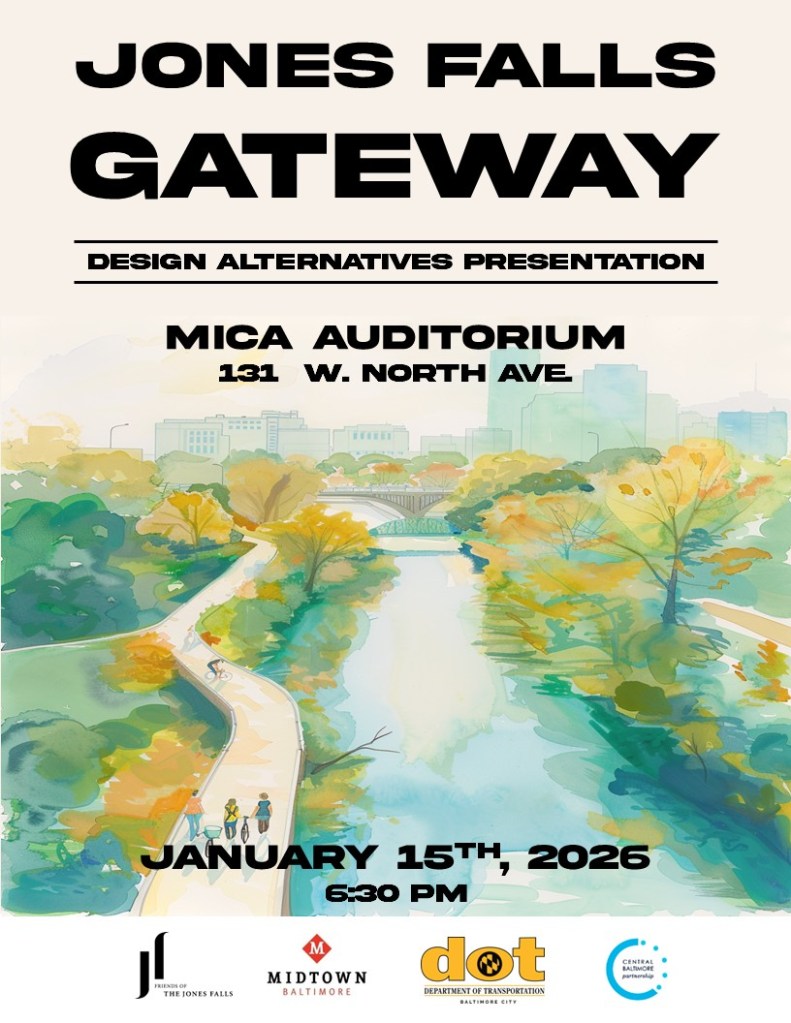 “Jones Falls Gateway” Project Open Meeting Posted byfriendsofjonesfallsDecember 31, 2025December 31, 2025Posted inUncategorized Come make your voices heard at what is sure to be an exciting presentation. Share this: Click to share on X (Opens in new window) X Click to share on Facebook (Opens in new window) Facebook Like Loading... Related